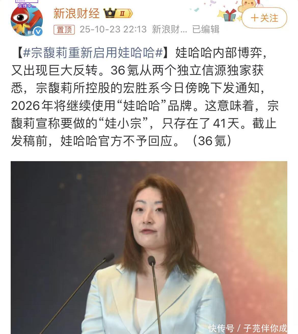 却怎么也没想到,宗馥莉不过是虚晃一招,她转身又放下娃小宗,继续使用娃哈哈了。